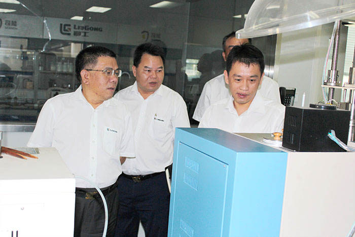 ? ? ? ?2014年9月22日上午,柳工集团公司曾光安总裁、副总裁郑津、黄祥全及相关部门领导深入基层到柳工高润公司进行调研,到一线进行现场指导工作。
