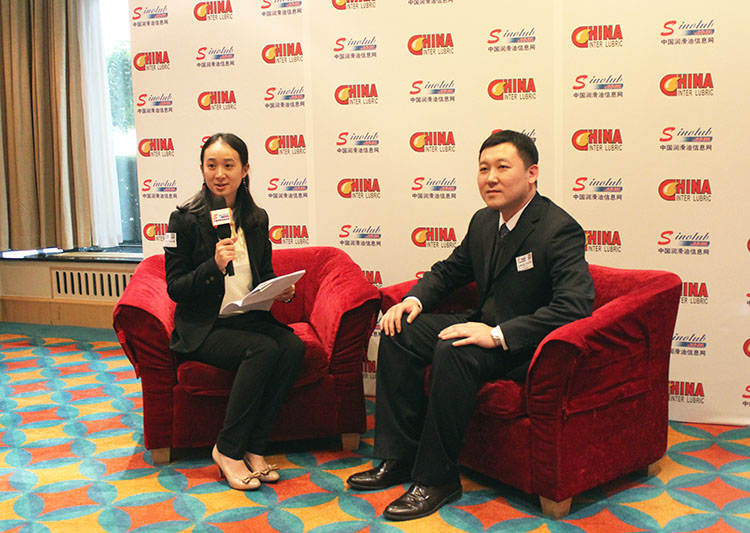 营销公司总经理孙毅(右一)接受中国润滑油信息网的采访