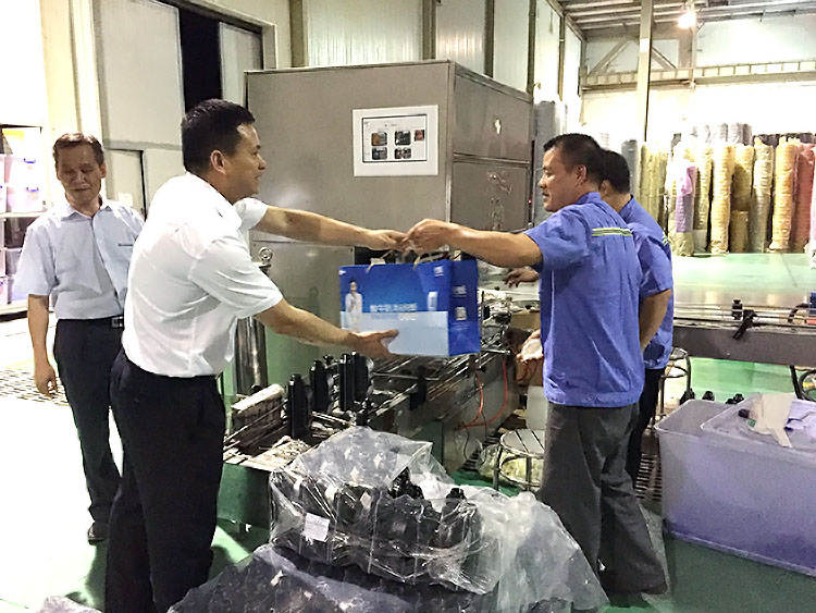 ? ? ? ?何景奇副书记拉着员工的手深情地说到“真的辛苦你们了!正是由于你们的无私奉献才有了高润的发展,谢谢你们!”何书记还强调,希望大家在赶生产任务的同时,要注意自我调节,紧记安全生产,保证产品质量,为公司的发展在不同岗位贡献出自己的力量。员工们对公司领导的及时慰问感到十分鼓舞,同时表示会按时保质完成生产任务。