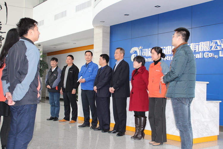 ? ? ? ? 随后在黎董事长的带领下,公司管理层依次到公司各部门、车间“串门”,向公司各条战线的员工致以新春祝福,感谢他们在过去一年里的辛勤付出,并鼓励大家在新的一年里再接再厉,再创佳绩。?