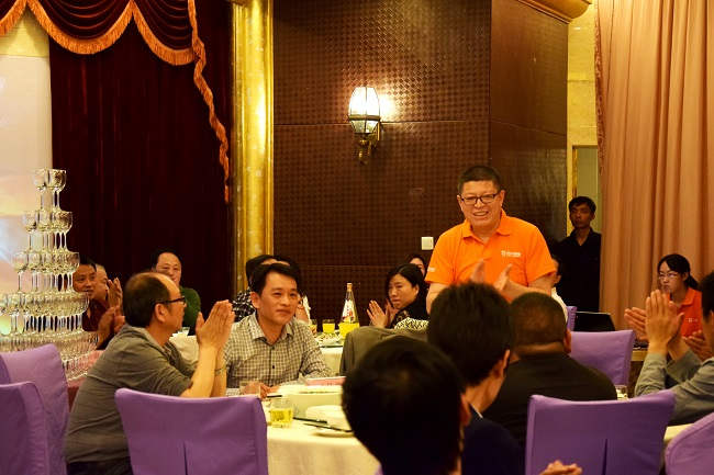 展会外场篇之司能晚宴,举办于展会首日晚餐时分,百余人到场?!八灸芎匣锶恕毙抡迹靖吖芨叩髯>?,席间觥筹交错,温馨昂扬。司能的新伙伴,老朋友,均争相发言。