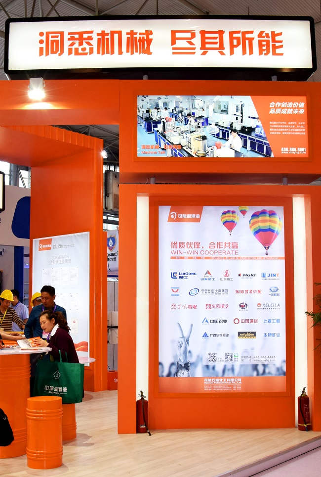 司能延续“一带一路”理念,以穿插的展台结构,重工的机械风格,带你重走不一样的丝绸之路。以司能橘及暖灰为主打色调,简洁的集装箱元素布局全场,前厅,大幅灯箱画面展现公司实力。后场,各子品牌产品以实物及画面的形式共同展示。