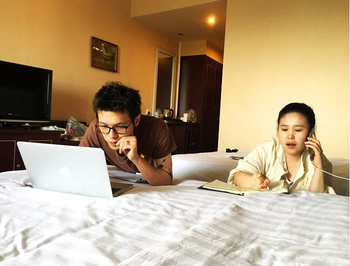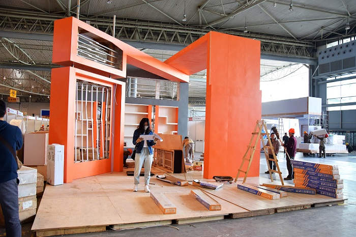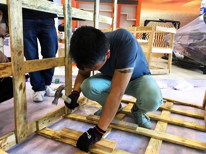 4.16,搭建开始。成都的工人和和气气,慢悠悠,负责搭建的小伙伴,一点也不敢放松监督。