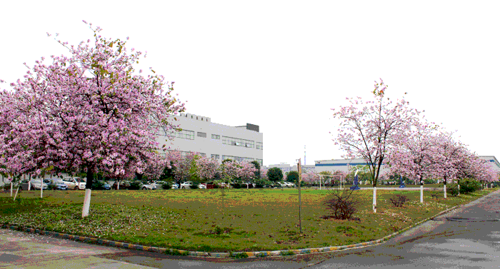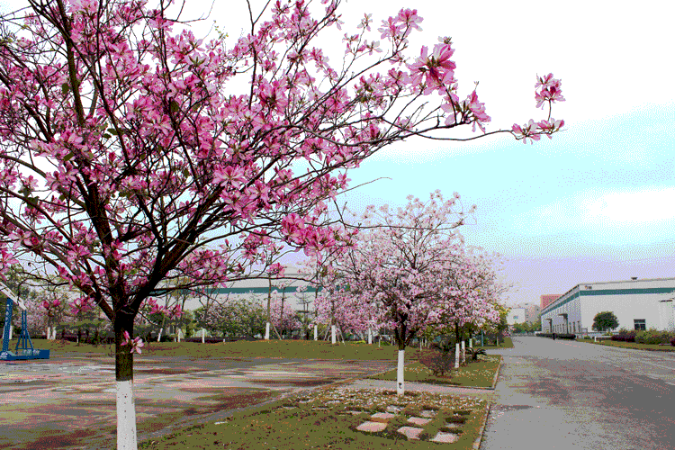 柳州基地里的紫?;ê?,鲜艳绮丽,幽香扑鼻。身处办公楼里无须开窗,都会被浓郁的花香熏醉。