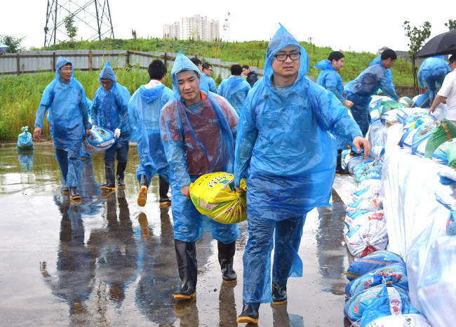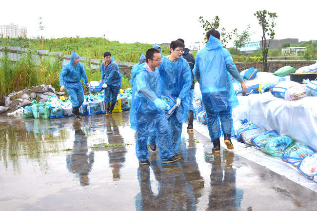 ? ? ? ? 在公司领导带领和指导下,防汛抗洪小组在雨中各司其职、主动配合、积极投入,切实做到了召之即来、来之能战、战之能胜。江苏司能生产总监陈鹰主动请缨,全天24小时值守在现??;司能第六党小组组长于增政带领全体党员利用休息日提前做好应急物资准备工作;司能全体员工为了避免物资损失连夜奋战……这些不顾个人得失的精神,正是我们在不断传递和保持的正能量!